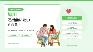 旭川で出会いたい方必見。旭川でおすすめの出会いスポット・マッチングアプリ・婚活パーティーを徹底解説。北海道第2の都市・旭川で実際に使えるサービスの選び方・身バレ対策・地方でも出会える攻略法まで2026年最新版で網羅。旭川在住の方はまずここから確認してください。