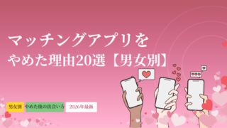 マッチングアプリをやめた理由を男女別・タイミング別に徹底解説。「疲れた」「出会えない」「めんどくさい」など20の理由と対処法を網羅。やめた後の出会い方・乗り換えにおすすめのアプリも紹介しています。「もうやめたい」と感じている方も、やめる前にこの記事を読んで最善の判断をしてみてください。