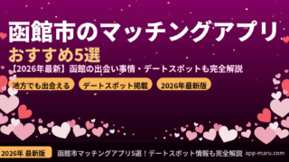 函館市のおすすめデートスポット6選を実際の写真付きで紹介します。函館山展望台・ロープウェイ(世界三大夜景)・金森赤レンガ倉庫・五稜郭公園・元町散策・バーと昼夜のコースを詳しく解説。函館でデートの相手を探すためのおすすめマッチングアプリ(ハッピーメール・PCMAX・ペイターズ)も合わせて紹介しています。