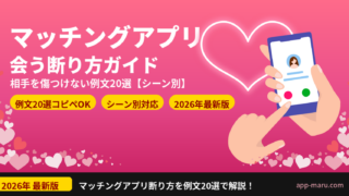 マッチングアプリをやめた理由を男女別・タイミング別に徹底解説。「疲れた」「出会えない」「めんどくさい」など20の理由と対処法を網羅。やめた後の出会い方・乗り換えにおすすめのアプリも紹介しています。「もうやめたい」と感じている方も、やめる前にこの記事を読んで最善の判断をしてみてください。