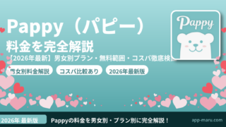 Pappy(パピー)の料金を男女別・プラン別に完全解説。女性完全無料の範囲・男性月額プラン・ポイント課金の仕組み・支払い方法・解約手順・他サービスとのコスパ比較まで徹底網羅。登録前に知っておきたい全情報をまとめました。